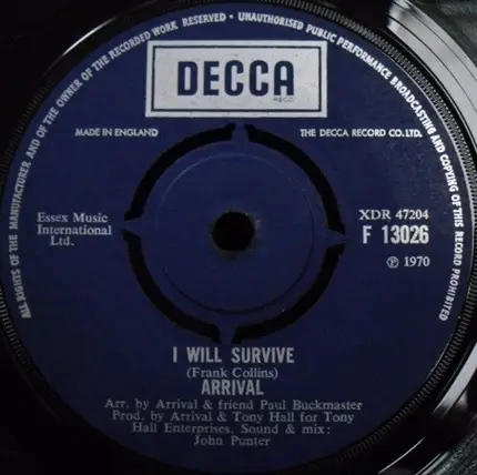 Entdecke „Arrival - I Will Survive“: Eine Veröffentlichung von 1970, aus UK - verfügbar als 7''