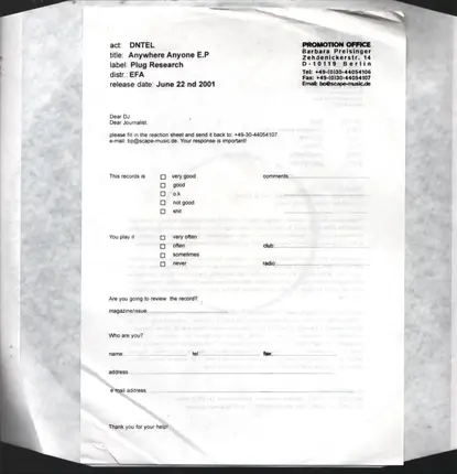 | 12'' | Plug Research | 2001 | US | Release Notes Included | 7,56 € | ||
