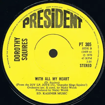 | 7'' | President Records PT 305 | 1970 | UK | – | 3,05 € | ||