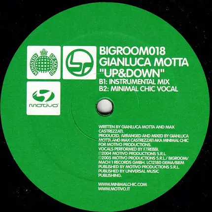 Produced, arranged and mixed for Motivo Productions. Published by Universal Music Publishing. ℗2004 Motivo Productions S.R.L. ©2005 Motivo Productions S.R.L./Bigroom/Mach 1 Records GmbH. LC 12180. GEMA/BIEM Runout groove: B522601-01 A1 MK B522601-01 B1 MK[discogs]