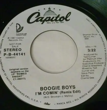 Discover “Boogie Boys - I'm Comin'”: One release from 1987, from US - Available in 7''