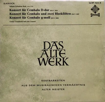 Konzert für Cembalo D-Dur BWV 1054 - Konzert Für Cembalo Und Zwei Blockflöten BWV 1057 - Konzert Für Cembalo G-Moll BWV 1058 - Gustav Leonhardt Und Sein Consort (Johann Sebastian Bach , Gustav Leonhardt , Leonhardt-Consort)