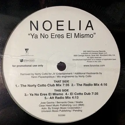 Discover “Noelia - Ya No Eres El Mismo”: One release from 2003, from US - Available in 12''